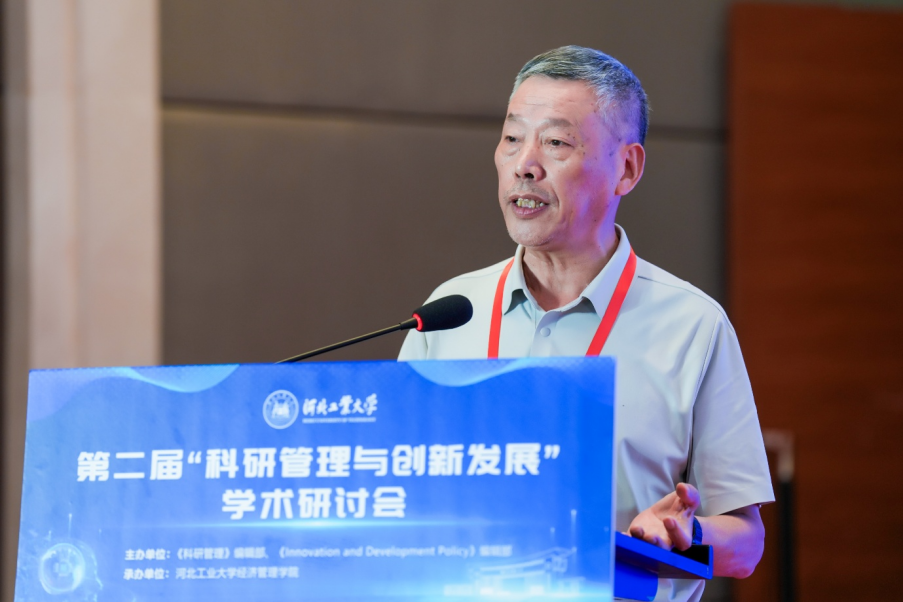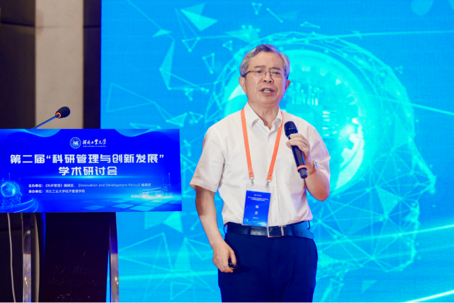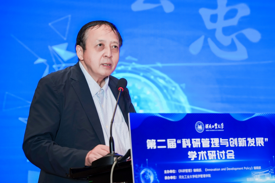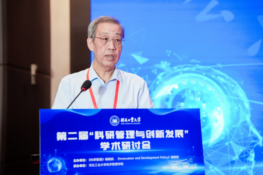主旨报告二由河北工业大学经济管理学院党委书记赵钊主持,中国科学学与科技政策研究会副理事长、中国科学院大学教授柳卸林,南京大学原党委常务副书记杨忠,中国科学院大学长聘体系特聘教授陈凯华,河北工业大学副校长刘炳胜分别作了主旨报告。
