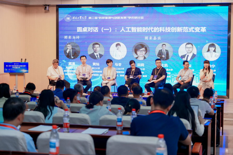 圆桌对话一的主题为“人工智能时代的科技创新范式变革”,由南京理工大学经济管理学院戚湧教授主持,对话嘉宾包括浙江大学管理学院黄灿教授、河北工业大学经济管理学院马苓教授、南开大学商学院田莉教授、首都经济贸易大学工商管理学院王凯教授、浙江工业大学管理学院吴宝教授、山东大学管理学院徐宁教授,主要围绕人工智能时代下的创新范式演变与协同创新模式展开。主持人首先回顾了从自然观测、理论驱动、仿真模拟到数据驱动的科研范式演进,并强调AI正在重构创新逻辑和主体结构。多位专家结合开源与闭源战略、企业与高校合作、用户创新、人机协同以及企业家精神等视角,探讨了AI带来的新机遇和挑战。专家们指出,AI推动了从线性到动态优化的创新过程,重塑了创新主体的角色,并提出在政策、伦理和治理层面需要新的制度安排以支撑未来的协同创新与产业生态转型。